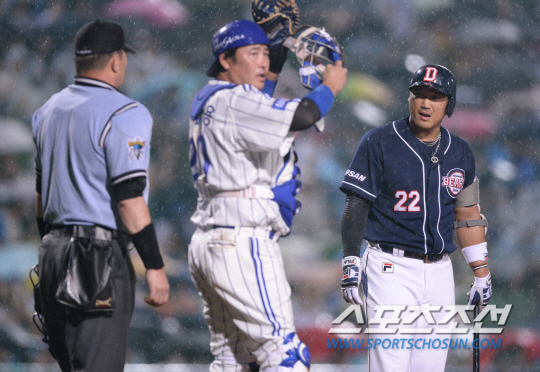 22일 삼성-두산전이 벌어진 대구구장에서는 기습호우가 심술을 부렸다.