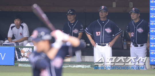 22일 오후 대구 시민야구장에서 2013 프로야구 두산과 삼성의 경기가 열렸다. 두산 김진욱 감독이 덕아웃에서 경기를 지켜보고 있다. 대구=김경민 기자 kyungmin@sportschosun.com