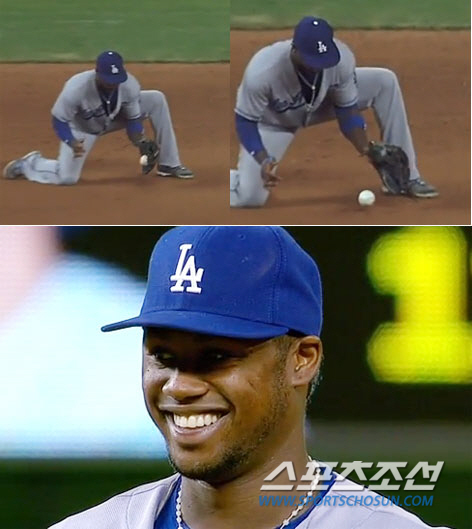 LA다저스 유격수 핸리 라미레즈가 고의낙구로 병살 플레이를 노렸으나 심판에게 딱 걸리고 말았다.