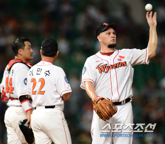 SK 이만수 감독이 레이예스의 세 타자 연속 볼넷에 단단히 화났다.