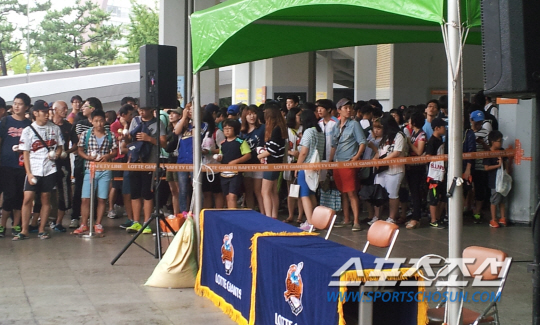 하지만 롯데 구단은 행사를 취소할 수가 없었다. 이날 낮 12시부터 세찬 빗줄기를 무릅쓰고 줄을 서 기다려 온 열성팬들이 눈에 밟혔기 때문이다.