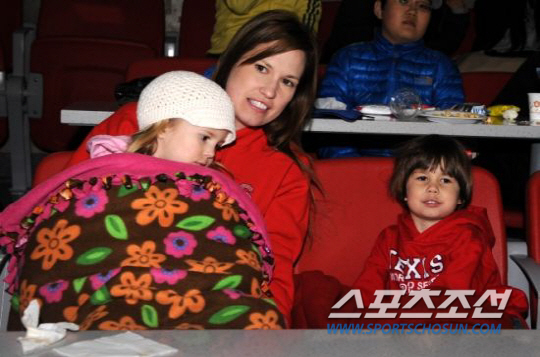 | 지난 2011년 두산 니퍼트가 등판하던 날 잠실구장에 응원을 하러 나온 그의 아내 캐리와 아들 케이든, 딸 오브리의 모습. 스포츠조선 DB |