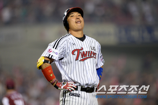1위 도약을 노리는 LG와 3위에 한 경기차로 접근한 넥센이 잠실에서 만났다. 27일 잠실구장에서 열린 LG와 넥센의 주중 2연전 첫번째날 경기에서 7회말 2사 1루 LG 이진영이 자신이 친 타구가 넥센 좌익수 장기영의 호수비에 아웃되자 아쉬워하고 있다. 잠실=허상욱 기자 wook@sportschosun.com/2013.08.27/ |