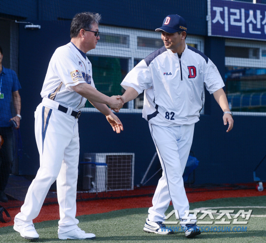 29일 마산 NC전에서 6대0으로 완승을 거둔 두산 김진욱 감독은 흡족한 미소를 보였다.
