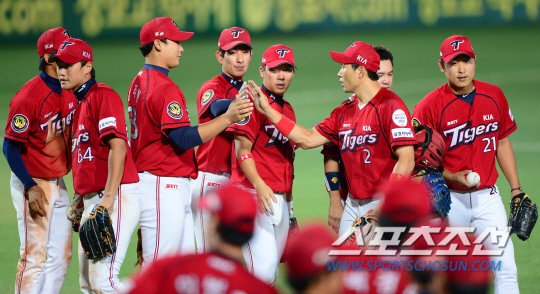 3일 대구야구장에서 프로야구 삼성과 KIA의 경기가 열렸다. KIA가 삼성에 5대2로 승리했다. 경기 종료 후 하이파이브를 나누고 있는 KIA 선수들. 대구=송정헌 기자 songs@sportschosun.com