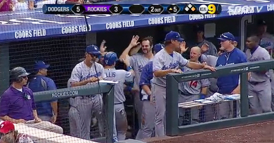 1회부터 역전을 거듭하는 난타전을 벌인 다저스는 2대3으로 뒤진 5회초 2사 1, 2루에서 후안 유리베와 커쇼의 연속 적시타로 3점을 뽑아 5대3으로 역전했다.