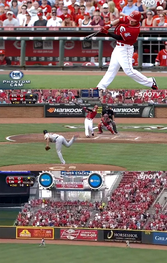 특히 이날 폭스 스포츠가 자랑하는 슬로우 모션 '팬텀 캠'에 잡힌 추신수는 완벽하게 오른쪽 어깨를 닫고, 무게중심을 뒤쪽으로 유지하고서 공을 완벽하게 잡아놓고 치는 모범적인 타격 폼을 선보였다.