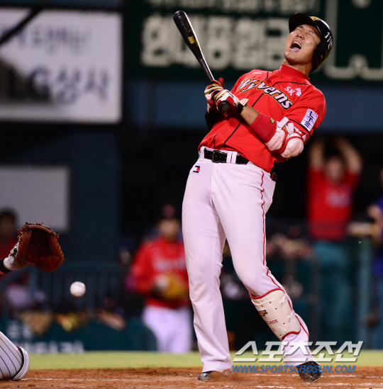 많이 맞으면서도 피하지 않고 공격적으로 타격을 하는 최 정은 갈수록 자신의 성적을 올리고 있다. 잠실=권인하 기자 indyk@sportschosun.com