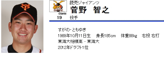 스가노가 오가와의 뒤를 바짝 추격하고 있다. 시즌 12승(5패). 오히려 스가노가 평균자책점(2.78)에선 오가와 보다 조금 낫다. 또 탈삼진도 135개(공동 3위)로 오가와(113개) 보다 크게 앞서 있다. 스가노는 요미우리 선발 중에서도 다승과 평균자책점에서 가장 뛰어나다.