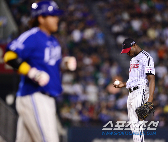 치열한 선두 다툼을 벌이고 있는 삼성과 LG의 프로야구 경기가 8일 잠실에서 펼쳐졌다. LG 리즈가 선발 등판 삼성 타선을 상대로 역투를 하고 있다. 제구력 난조로 6회 삼성 배영섭을 병원으로 보낸 LG 선발 리즈가 7회에도 박석민에게 사구를 허용 했다. 잠실=조병관기자 rainmaker@sportschosun.com/2013.09.08/ |