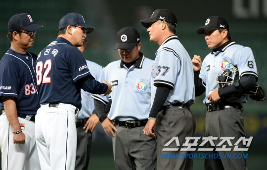 전날 손시헌 타석 때의 아웃 판정이 문제가 됐다. 0-1로 뒤진 두산의 2회초 2사후 손시헌이 친 3루수앞 땅볼을 최 정이 옆으로 치우치게 던졌고 SK 1루수 박정권이 가까스로 잡았으나 공을 잡았을 때 발이 베이스에서 떨어져 있었다. 타이밍상으론 아웃이었지만 발이 떨어져있었기에 손시헌은 세이프였다. 하지만 당시 1루심이었던 박근영 심판원은 아웃이 됐고 손시헌과 김민재 1루 주루코치에 이어 김진욱 감독까지 나서 항의했지만 받아들여지지 않았다.