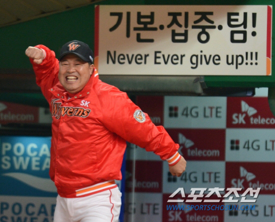 하지만 SK 이만수 감독은 희망의 끈을 놓지 않았다. 14일 경기가 끝난 뒤 집으로 간 이 감독은 구단 프런트와 코치, 선수들 50여명에게 문자 메시지를 보냈다. 매우 짧은 글. 'Never Ever Give Up'이란 글이었다. 절대 포기하지 말자는 것. 단체문자를 보내는 법을 몰라 일일이 한명씩 문자를 보내야 했지만 기꺼이 그 수고를 받아들였다.