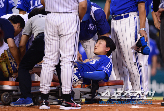 | 삼성 배영섭이 결국 1군 엔트리에서 제외됐다. 삼성은 15일 대전 한화전을 앞두고 어리럼증을 호소하고 있는 배영섭을 1군에서 제외했다. 지난 8일 잠실 LG전서 리즈의 공에 헬멧을 맞고 병원으로 옮겨지고 있는 배영섭. 조병관기자 rainmaker@sportschosun.com |