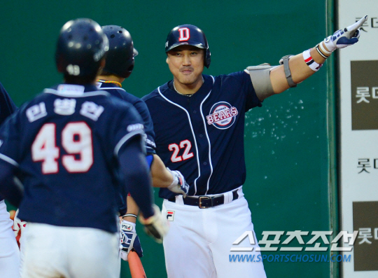 두산 홍성흔이 17일 포항 삼성전에서 내야 적시타로 43경기 연속 출루 행진을 이어갔다. 정재근기자 cjg@sportschosun.com