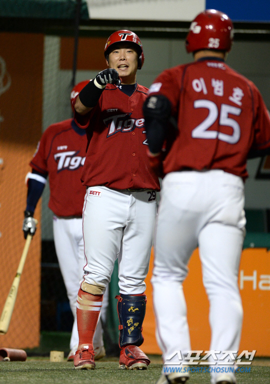 타선은 나지완이 이끌었다. 고비마다 컴팩트한 스윙으로 알토란같은 타점을 쓸어담았다. 1회 무사 만루에서 한화 선발 이브랜드의 패스트볼을 당겨 2타점 적시타를 뽑아냈다. 2-1로 박빙의 리드를 지키던 6회 2사 3루에서 좌익선상 적시 2루타로 천금같은 추가점을 뽑아냈다. 몸쪽으로 잘 제구된 141㎞짜리 패스트볼을 양 팔을 몸에 붙이는 짧은 스윙으로 좌익선상에 떨어뜨렸다. 나지완은 김주형의 적시타 때 홈을 밟아 점수차를 더 벌렸다. 4타수2안타 3타점의 만점 활약. 시즌 91타점으로 타점왕 경쟁에도 가세했다.