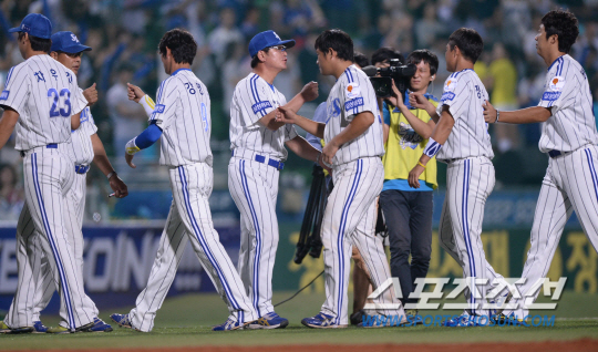 삼성이 두산을 잡고 선두 LG와의 승차 1.5경기를 유지했다.