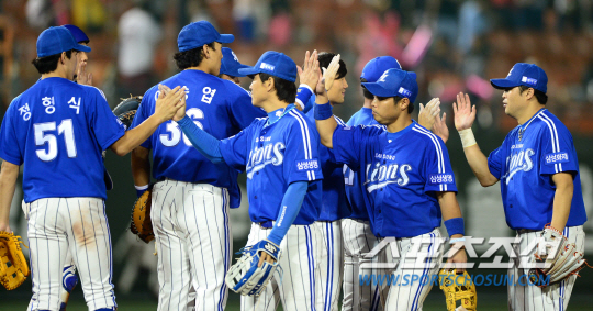 삼성 선수들이 하이파이브를 나누고 있다. 송정헌 기자 songs@sportschosun.com