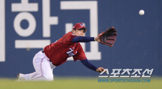 5일 오후 서울 잠실야구장에서 2013 프로야구 KIA와 두산의 경기가 열렸다. 3회말 1사 1루서 우익수 이종환이 두산 민병헌의 타구를 잡아내고 있다. 잠실=김경민 기자 kyungmin@sportschosun.com / 2013.09.05. |