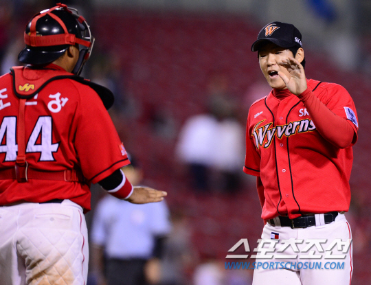 | SK 박희수와 조인성. 조병관기자 rainmaker@sportschosun.com |