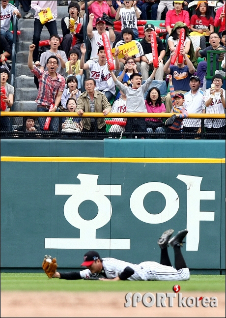 1회말 2사후 상황에서 우익수 이진영은 SK 최정의 우중간으로 떨어지는 안타성 타구를 잡아냈다. 우익수와 중견수 사이로 떨어지는 타구였지만, 타구의 낙하지점을 정확히 파악하고 빠르게 달려와 잡아냈다. 이진영의 호수비로 LG와 SK는 경기 초반 팽팽한 대결을 이어갔다.