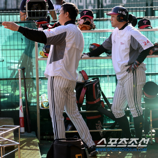 선두 재도약을 노리는 LG와 4위 두산이 잠실에서 만났다. 30일 잠실구장에서 열린 LG와 두산의 경기 전 LG 타격훈련을 마친 이병규가 정의윤과 이야기를 나누고 있다. 잠실=허상욱 기자 wook@sportschosun.com