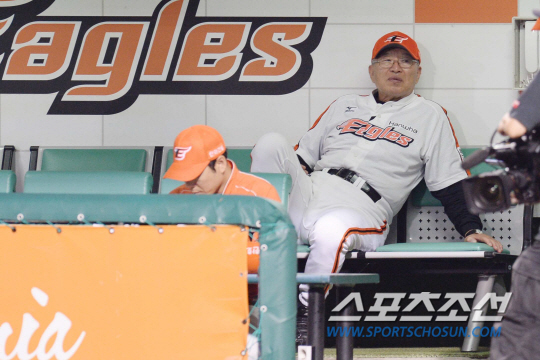 한화이글스와 삼성라이온스의 2013프로야구 경기가 30일 잠실 야구장에서 열렸다. 한화 김응룡 감독이 팀이 0-6으로 뒤지던 5회말 침통한 표정으로 경기를 지켜보고 있다. 삼성은 최형우, 이정식, 박석민의 홈런으로 초반부터 한화를 몰아 붙였다. 대전=최문영 기자 deer@sportschosun.com