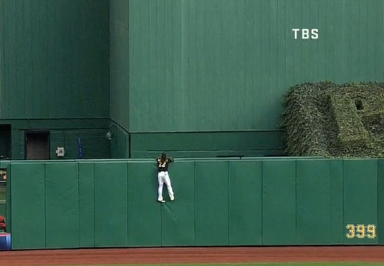 만약 펜스를 타고 올라 결정적 홈런성 타구를 잡아냈다면 PNC 파크를 찾은 팬들에게는 한동안 잊지 못할 최고의 선물이 될 법 했던 장면.