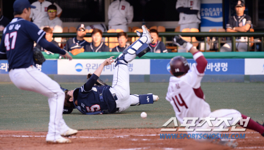 박병호는 방망이 한 번 휘두르지 않고, 그냥 서서 주자 서건창이 홈으로 들어오게 했다. 넥센 입장에선 천금 같은 동점이었다.