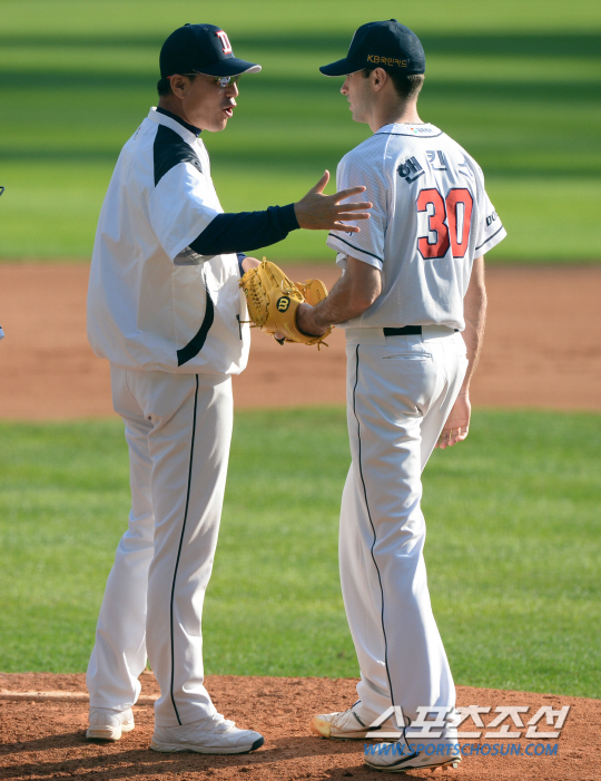 두산도 맞불을 놨다. 예정대로 선발 이재우에 이어 핸킨스를 등판시켰다.