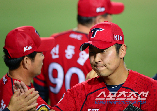 3일 대구야구장에서 프로야구 삼성과 KIA의 경기가 열렸다. KIA 윤석민이 8회 마운드에 올라 2이닝 무실점 투구하며 세이브를 올렸다. 경기 종료 후 하이파이브를 나누고 있는 윤석민. 대구=송정헌 기자 songs@sportschosun.com/2013.9.3