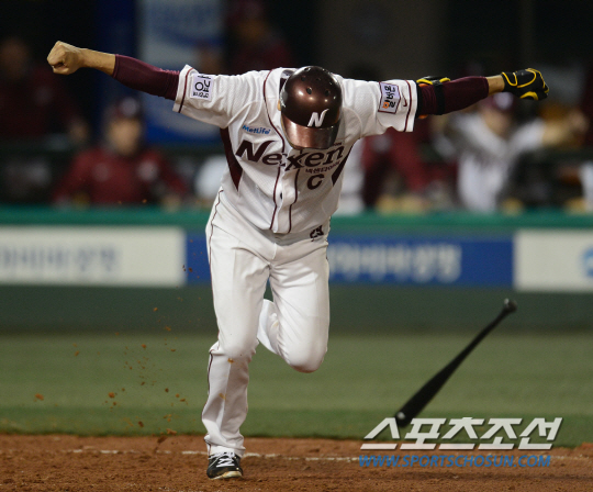 두산 베어스와 넥센 히어로즈의 2013 프로야구 준플레이오프 1차전이 8일 목동구장에서 열렸다. 9회말 2사 2,3루 넥센 이택근이 끝내기 안타를 치고 달려나가며 환호하고 있다. 목동=정재근기자 cjg@sportschosun.com/2013.10.08/
