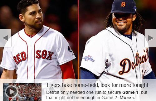 디트로이트는 0-0이던 6회초 1사후 미구엘 카브레라의 볼넷, 프린스 필더의 사구로 만든 2사 1,3루 찬스에서 쟈니 페랄타의 적시타로 결승점을 뽑았다. 페랄타는 보스턴 선발 존 레스터의 78마일짜리 커브를 받아쳐 중견수 앞에 떨어지는 안타로 3루주자를 불러들였다.