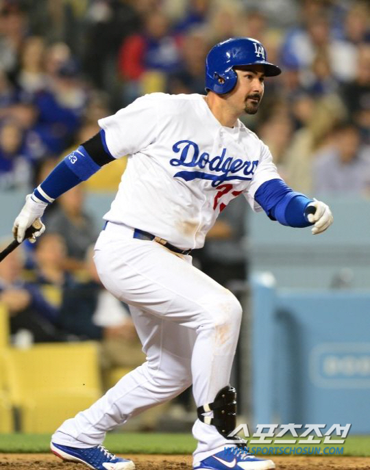 | LA 다저스가 4회 애드리언 곤잘레스의 2루타로 23이닝만에 득점을 올렸다. 스포츠조선 DB |