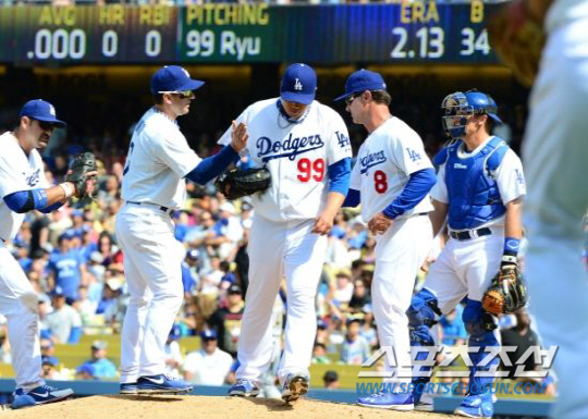 | LA 다저스 류현진은 리그챔피언십시리즈 3차전서 7이닝 무실점으로 호투하며 그동안 제기됐던 부상 의혹을 말끔히 씻었다. 스포츠조선 DB |