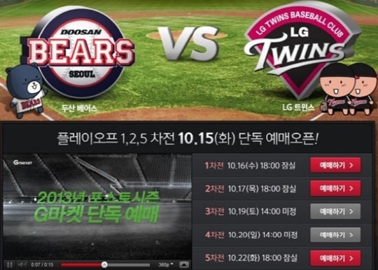 LG 트윈스와 두산 베어스의 플레이오프 티켓예매 전쟁에 G마켓, 티켓링크의 예매 시스템이 마비됐다.