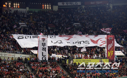 두산 베어스와 LG 트윈스의 2013 프로야구 플레이오프 2차전이 17일 잠실구장에서 열렸다. LG 쪽 관중석이 팬들로 꽉 찬 가운데 열띤 응원전이 펼쳐지고 있다. 잠실=정재근기자 cjg@sportschosun.com