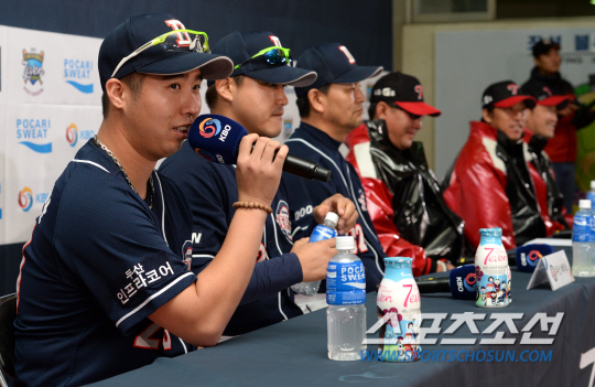PO 미디어데이에서 유희관은 "이병규 선배를 반드시 잡아 복수하겠다"고 '돌직구'를 날렸다. 하지만 베테랑 이병규는 여유있게 "난 져도 된다. 팀만 이기면 된다"며 입담을 과시했다.