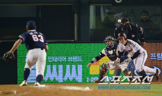 기습 번트가 아닌 희생 번트의 경우 투수가 투구 동작에 들어가기 전부터 번트 자세로 나서는 것이 일반적입니다. 비슷한 공이면 초구부터 번트를 시도해 성공시키는 것이 주자들의 혼란도 막을 수 있습니다. 하지만 어제 경기에서 LG 타자들은 초구부터 번트를 시도한 것은 한 번밖에 없었으며 대부분 볼 카운트를 길게 끌고 가며 번트를 천천히 시도했습니다. 투수가 투구 동작에 나서기 전부터 번트 자세를 드러내 보이는 페넌트레이스와는 달리 번트 자세를 취했다 방망이를 거두는 일도 잦았습니다. 상대 배터리와 내야진을 최대한 혼란스럽게 하려는 의도가 엿보였습니다.
