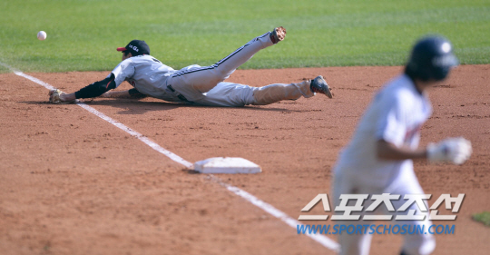이어진 무사 만루에서 나온 김현수의 1루수 앞 땅볼. 1루수 이병규의 홈송구엔 문제가 없었지만, 포스아웃 뒤 다시 1루를 노린 포수 윤요섭의 송구가 다소 문제가 있었다.