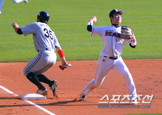 2회 실책으로 선취점을 빼앗긴 LG. 마음이 급했다. 1승2패로 벼랑 끝에 몰린 상황. 빠른 동점으로 심리적 안정을 찾을 필요가 있었다. 3회 무사에 손주인이 안타로 출루했다. 9번 윤요섭 타석. 희생 번트 사인이 나왔다. 초구에 번트를 댔다. 투수 유희관 앞으로 향한 타구. 한 치 망설임 없이 2루로 송구했다. 포스아웃. 후속타 불발 속 득점은 무산됐다. 4회에는 더 빅 찬스가 왔다. 잘 던지던 유희관이 갑자기 흔들렸다. 공을 뿌리지 못하면서 제구가 높게 형성됐다. 연속 볼넷으로 무사 1,2루. 이병규 타석에서 초구 스트라이크가 들어오자 2구째 희생번트 작전이 또 나왔다. 타구는 또 한번 유희관 쪽으로 향했다. 하지만 유희관은 이번에도 과감하게 3루에 던져 포스아웃을 시켰다. 1,3루수가 달려나와 타자를 압박하는 100% 수비도 아니었지만 번트는 투수 정면 쪽을 향했고 유희관의 과감한 순간 판단이 또 한번 이어졌다.