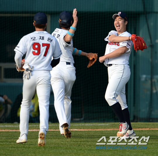 흔히 "포스트 시즌을 즐겨야 한다"는 선수들이 많다. 그러나 말로만 그러는 경우가 많다. 유희관의 투구와 액션, 그리고 덕아웃에서의 표정을 자세히 보자. 그는 실제로 그렇다. 잠실=류동혁 기자 sfryu@sportschosun.com