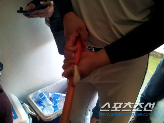 25일 대구 2차전을 앞두고 또 한번 화제가 됐다. 정확한 느낌 차이를 묻자 김현수는 아예 라커룸으로 들어가 고무링과 배트를 가지고 나왔다. 링 착용할 때와 벗을 때의 차이점을 설명하기 시작했다. "엄지손가락에 이걸 대고 배트를 쥐면 손에 딱 붙지 않잖아요. 그만큼 타이밍이 늦어져요. 중심보다 살짝 손잡이 쪽에 맞아도 손이 덜 울리고요. 대신 잘 맞아서 넘어갔나 싶은 공이 외야에 잡히는 경우가 많죠. 이걸 빼고 나니 타이밍이 빨라지네요."