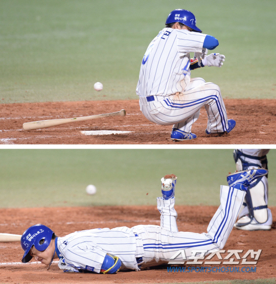 맞는 순간 고통에 얼굴이 심하게 일그러진 정병곤은 그대로 주저앉았다. 트레이너가 뛰어나왔고 장갑을 벗고 부상 부위를 면밀하게 체크. 응급 치료 후 정병곤은 1루로 걸어나갔다. 경기 후 진단이 필요하지만 골절 등 심각한 부상은 아닌 듯 했다. 1루 출루 후 두산 벤치에서 김진욱 감독이 나와 최수원 주심과 김풍기 1루심에게 잠시 항의를 했다. 스윙 과정에서 맞은 것 아니냐는 요지. 하지만 공에 맞아 배트를 돌리지 못했다는 심판진의 설득에 벤치로 돌아갔다. 김상수 부상으로 유격수로 대신 출전하고 정병곤. 자칫 큰 부상이었다면 삼성으로선 남은 시리즈가 암담할 뻔 했다. 십년감수한 정병곤의 사구 장면. 정병곤은 8회초 수비부터 정 현으로 교체됐다.