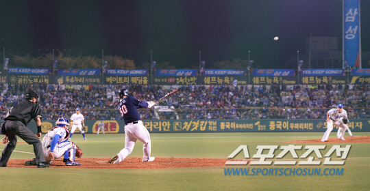 24일 오후 대구 시민야구장에서 2013 프로야구 한국시리즈 1차전 두산과 삼성의 경기가 열렸다. 5회초 1사서 두산 김현수가 삼성 윤성환에게서 우월 솔로홈런을 치고 있다. 대구= 김경민 기자 kyungmin@sportschosun.com