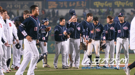 준플레이오프와 플레이오프에서 약세라는 평가를 뒤집고 승리를 한 두산이 삼성과의 한국시리즈 1차전서 7대2의 완승을 거두면서 4위팀의 한국시리즈 우승이 처음으로 이뤄지는 것이 아니냐는 팬들의 기대가 커지고 있다.
