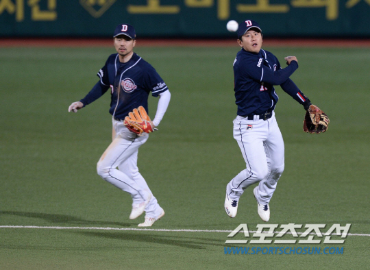 김재호와 손시헌. 두산의 주전 유격수 자리를 놓고 선의의 경쟁을 벌이는 선수들.