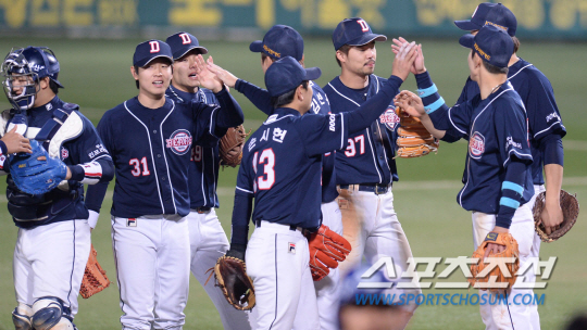 선발투수들도 제 몫을 충분히 해줬다. 1차전서 노경은은 6⅓이닝 4안타 1실점으로 승리투수가 됐고, 2차전 선발 니퍼트는 6이닝 3안타 무실점으로 승부를 불펜 싸움으로 몰고갔다. 플레이오프 MVP에 오른 유희관은 이번 포스트시즌 3경기에서 평균자책점 0.84를 기록했다. 21⅓이닝 동안 2점 밖에 내주지 않았다. 노경은은 포스트시즌 3경기서 모두 퀄리티스타트(선발 6이닝 이상 3자책점 이하)를 올렸고, 니퍼트는 선발과 불펜을 오가며 5경기에서 1승 1세이브에 평균자책점 2.95를 기록했다. 삼성 선발진을 압도하는 성적표다. 수비 실책은 9경기에서 2개 밖에 범하지 않았다. 공수주에 걸친 밸런스가 완벽에 가깝다.
