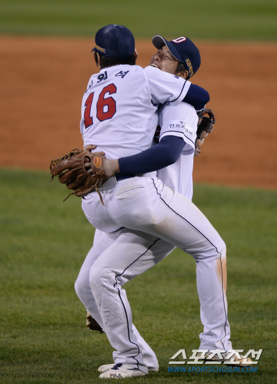 결국 김현수가 살아났다. 그동안 두산은 최재훈 오재일 김재호 등이 돌아가면서 맹활약을 펼쳤다. 이제 민병헌에게 기회가 왔다.