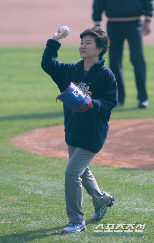 실제로 이날 박 대통령은 태극무늬를 상징하는 빨간색과 파란색이 섞인 글러브를 끼고 마운드에 올라 시선을 모았다. 특히 글러브의 표면에는 태극기가 새겨져 있어 눈길을 끈다.