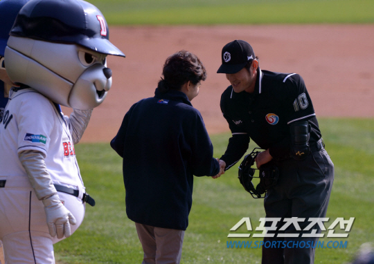 심판실은 어땠을까. 이날 심판진이 대통령의 시구를 통보받은 건 경기 시작 1시간 전이다. 오더를 교환할 때쯤, 한국야구위원회(KBO) 직원이 '그 분이 오신다'고 말했다. 그리고 평소와는 다른 경기 전 동선에 대해 설명했다.